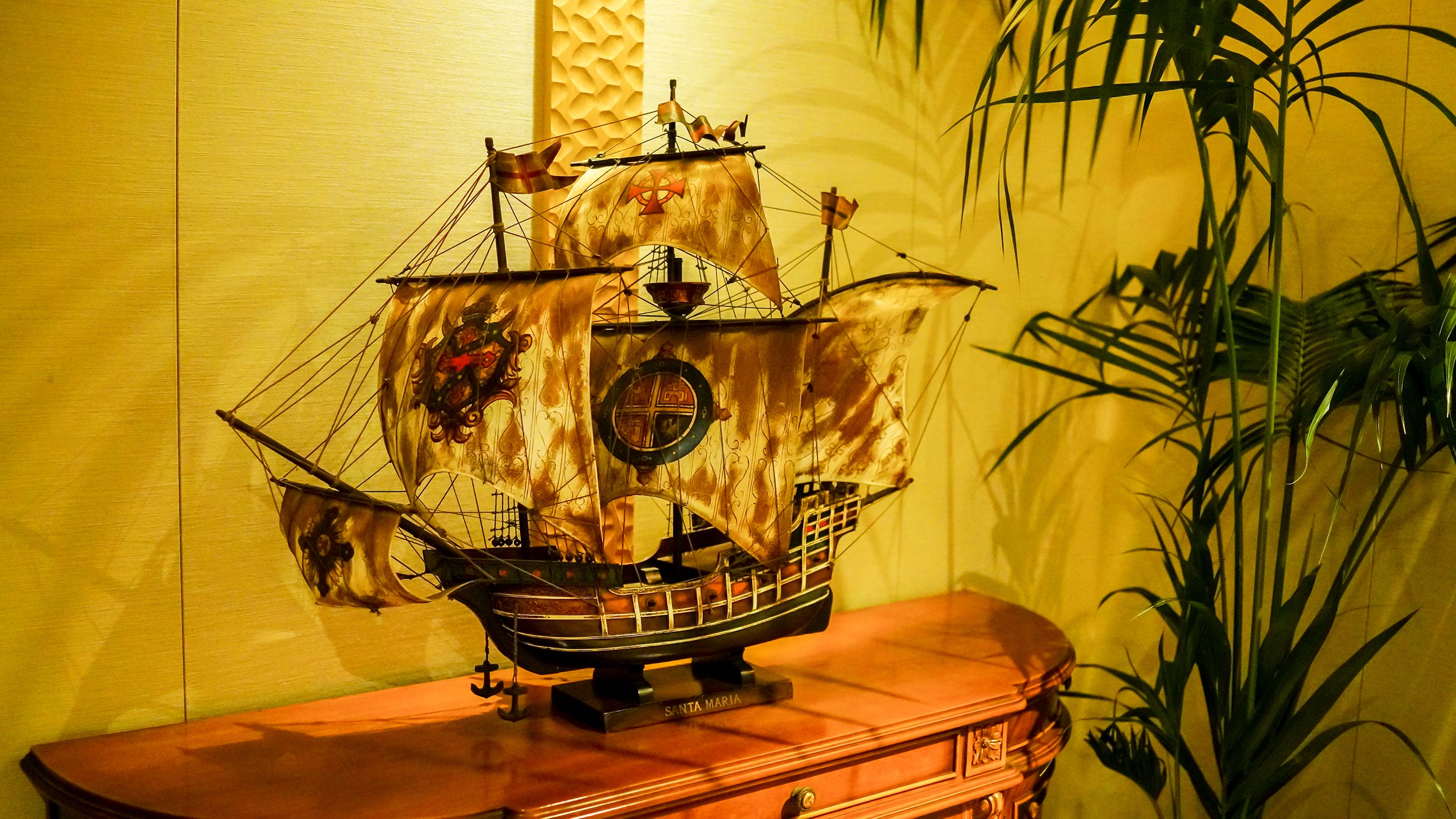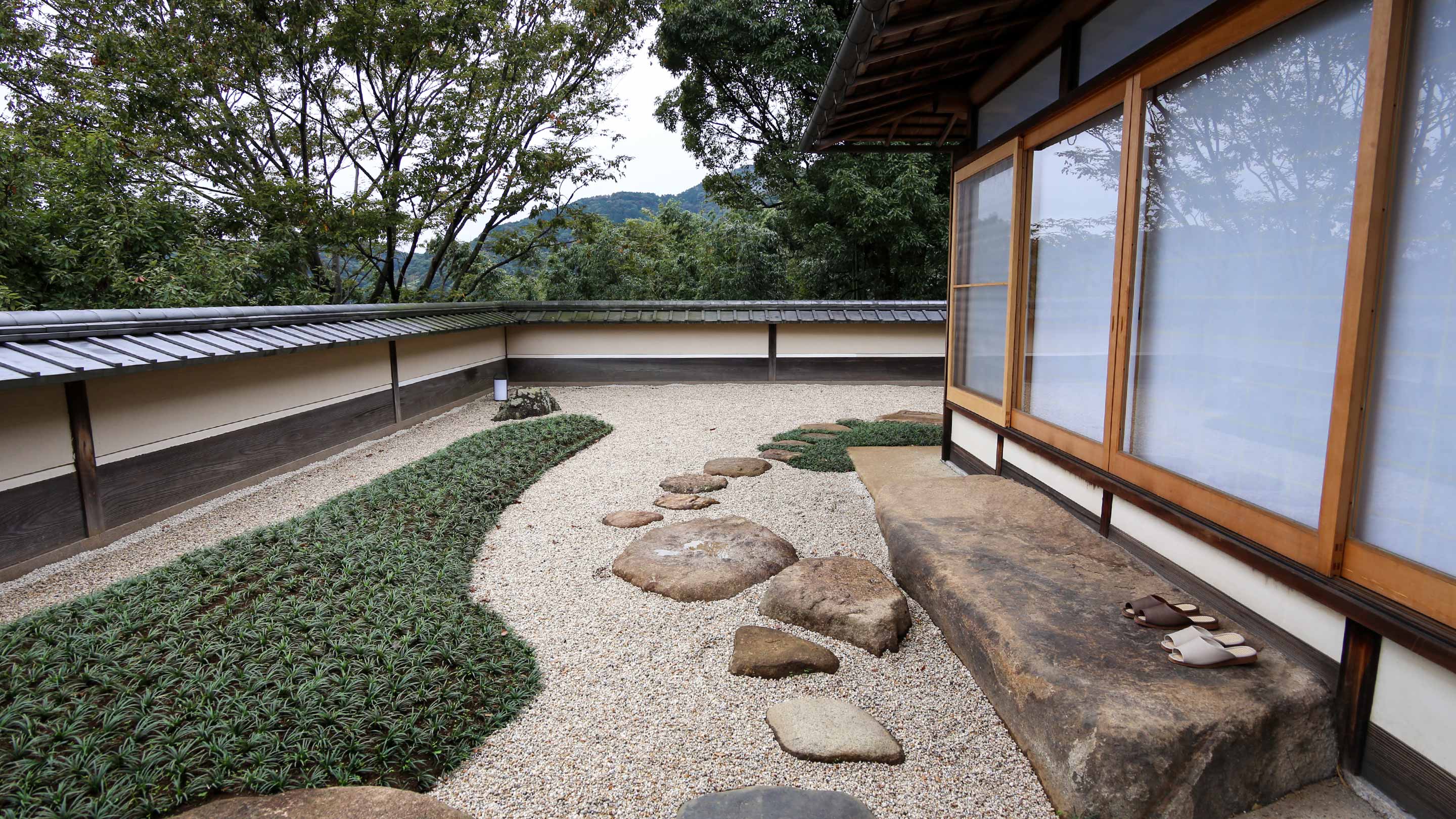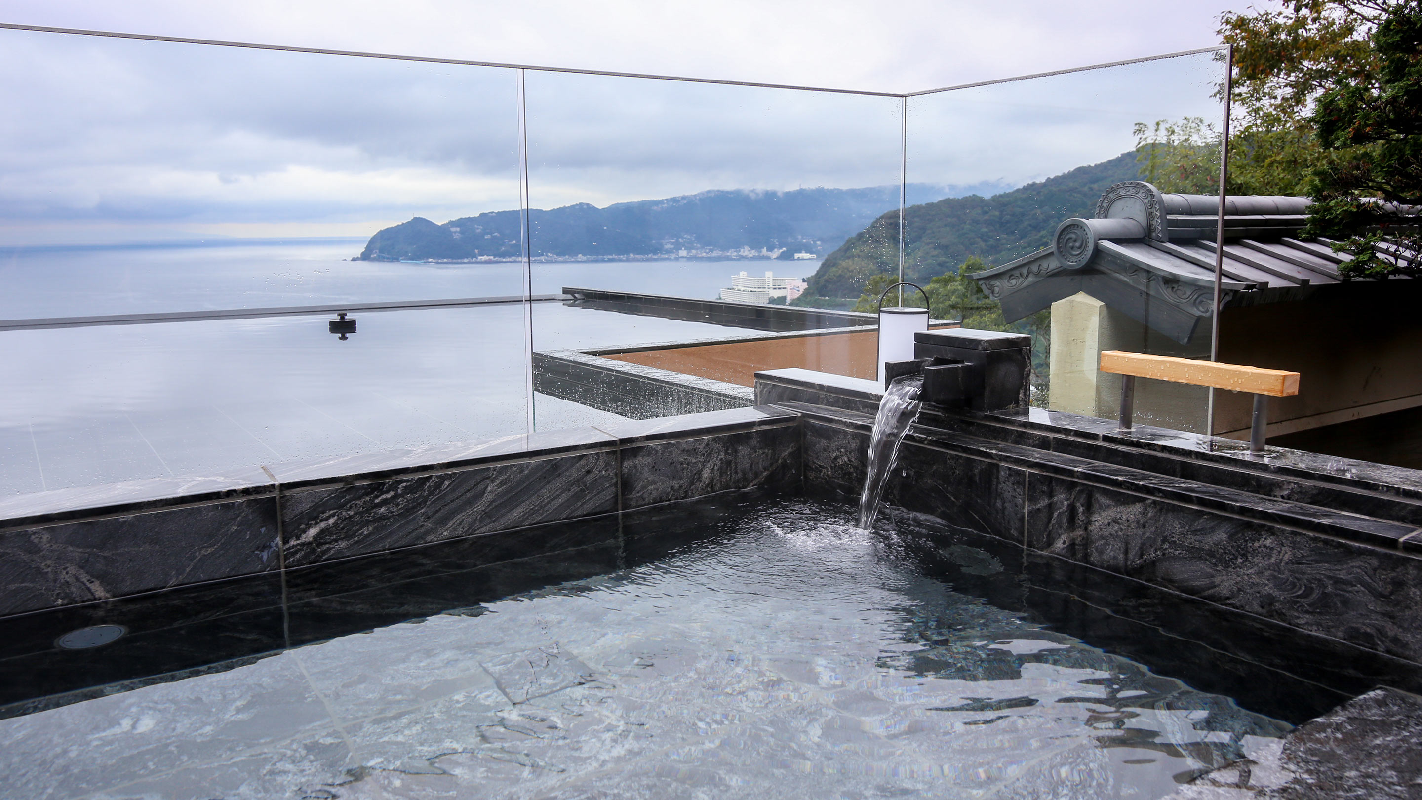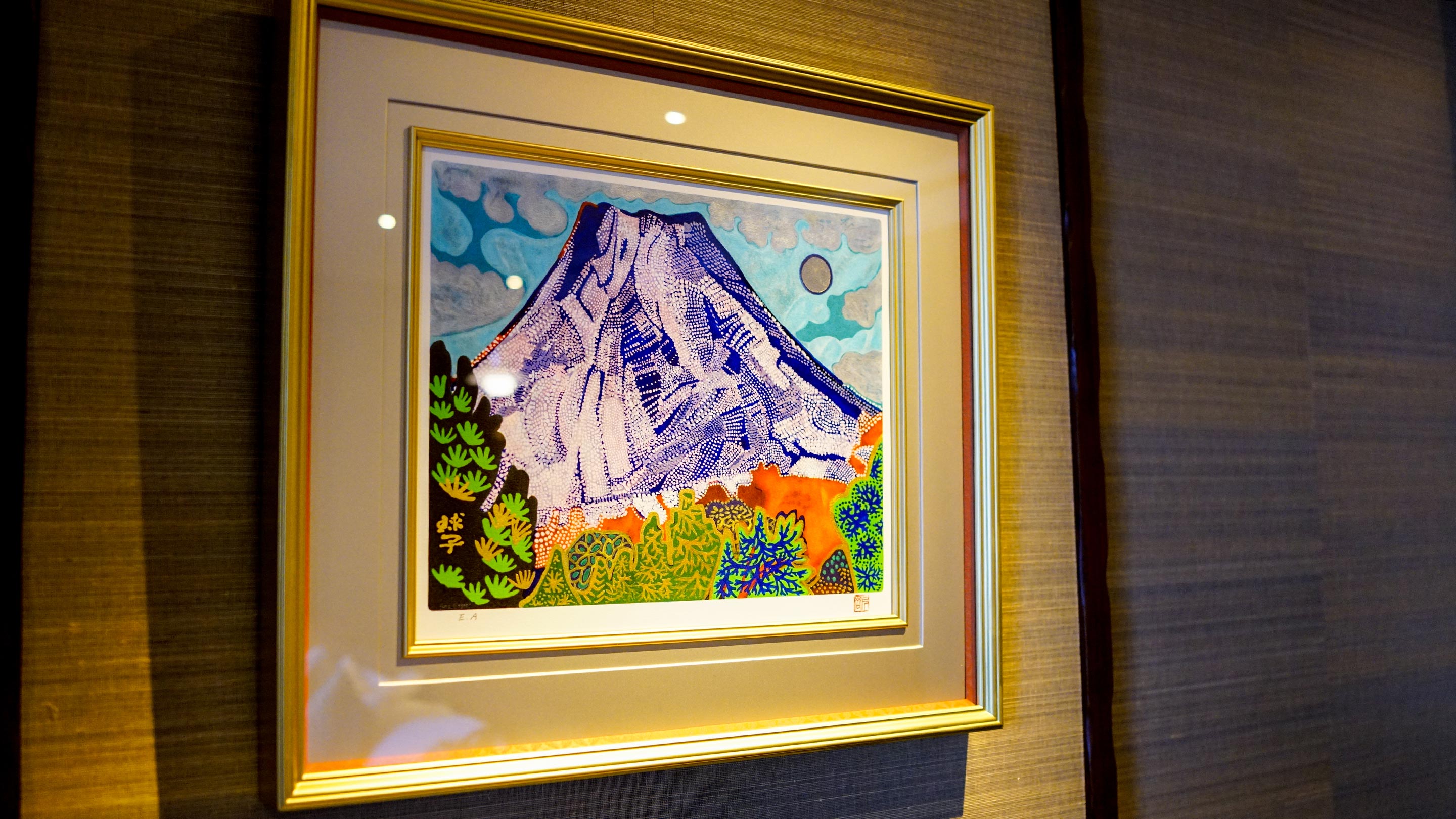 館内のラウンジに足を踏み入れると、目の前には相模湾。天井には、長さ20メートルはあろうかという見事な一木の梁。あちらこちらにジョアン・ミロの絵画や片岡球子の富士山の絵が飾られ、心を和ませる。客室をはじめ、所々に置かれた精巧な帆船の模型にも目が吸い寄せられた。さらに、書や蒔絵の文箱など、多くの美術品が惜しげもなく展示されているところに、格式の高さまで伺える。