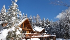 フェニックスウイング白馬のレストラン棟。樹齢100年を超える丸太で構成された本格的なログハウス。