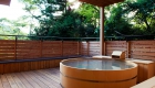 「箱根リトリート villa 1/f(ワンバイエフ)」は、箱根・仙石原の広大な森に11棟のモダンなヴィラが点在する別荘地のような佇まい。全室に大涌谷の源泉から温泉が引き込まれ、客室の露天風呂や内風呂などで堪能できる。温泉の湯けむりと暖炉の炎のゆらぎ—心身ともに癒される別荘仕様の贅沢なヴィラは、自分だけの”隠れ家”のように過ごすのに最適だ。